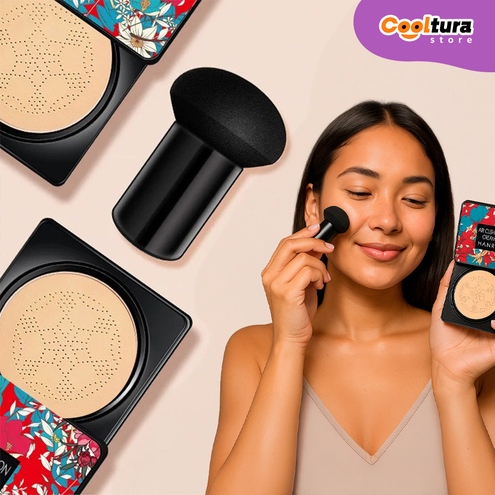 Essa é a solução chamada por nós de Toque Cogumelo, pois a Base BelleCush acompanha um aplicador Mushroom Puff onde cada toque no aplicador libera a dose exata do produto, eliminando desperdício e garantindo cobertura uniforme em segundos.